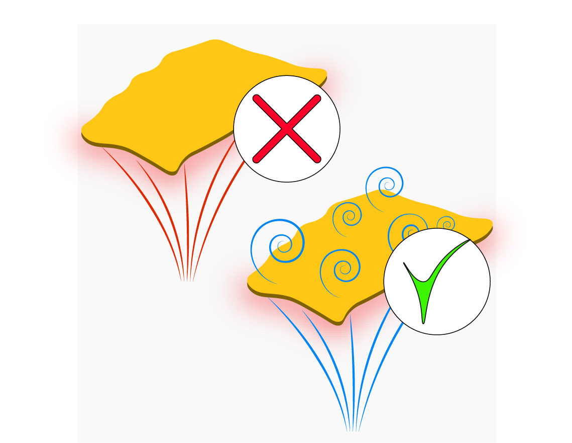 Allerdings ist es nicht ganz unumstritten, die ganze Nacht von einem Ventilator angeblasen zu werden. Insbesondere Allergiker sollten den Luftstrom nicht direkt auf den Körper richten, da der Ventilator Staubpartikel und Pollen aufwirbelt. Nebenbei kann die Luft im Schlafzimmer dadurch sehr trocken werden. Besser man richtet den Ventilator Richtung Zimmerdecke, sodass die Luft zirkulieren kann. Die kalte Luft sinkt ab, und man verspürt eine angenehme Kühlung. Bei großer Hitze kann eine Schüssel mit Eiswürfeln vor den Ventilator gestellt werden. Feuchte Tücher über dem Ventilator helfen dabei, die Luft herunterzukühlen. Optimalerweise ist das Gerät an der Schattenseite der Wohnung aufgestellt. Grenzt diese an einen kühlen Innenhof, lässt sich die frischere Luft von dort durch ein offenes Fenster nach innen bewegen.