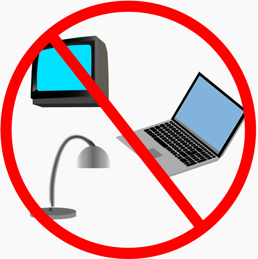 Elektronische Geräte geben Wärme ab. Wärmequellen wie Lampen, Laptops oder Fernseher sollten im Schlafzimmer ausgeschaltet bleiben, so wird die Umgebung kühler und das Einschlafen fällt leichter. Faustregel: Eine Stunde vor dem Schlafengehen ist Sendepause! Amerikanische Studien haben den Einfluss elektronischer Geräte auf die Nachtruhe untersucht und herausgefunden, dass das blaue Licht insbesondere von Smartphones die Schlafqualität stark verschlechtert. Das Licht hemmt die Ausschüttung des Schlafhormons Melatonin, das die Müdigkeit fördert.